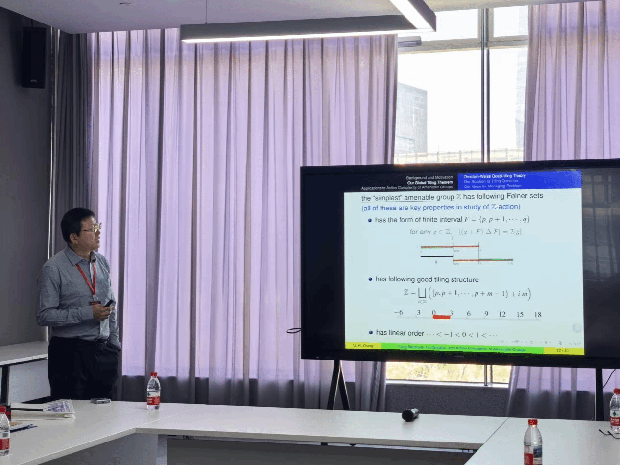 的周到安排表示感谢,同时也指出动力系统与算子理论存在天然而深刻的联系,希望两个课题组通过此次交流会加深对彼此学科的理解,加强合作,碰撞出更多的火花。四川大学张旭教授以自身的研究为例,解释了算子理论与动力系统之间的联系。